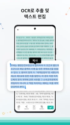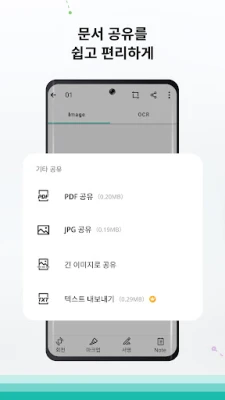 CamScanner의 최첨단 이미지 처리 기술은 스마트폰 카메라로 촬영한 문서를 자동으로 보정하고 테두리를 감지하여 고품질의 PDF 또는 JPEG 파일로 변환합니다. 41개 언어를 지원하는 혁신적인 OCR(광학 문자 인식) 기능으로 이미지 속 텍스트를 손쉽게 검색, 편집, 공유할 수 있습니다. 스캔된 모든 문서는 휴대폰, 태블릿, 컴퓨터 간에 끊김 없이 동기화되며, 태그 분류, 손글씨 메모, 워터마크, 전자 서명 및 강력한 암호화 기능으로 체계적이고 안전하게 관리할 수 있습니다.