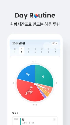 데이루틴은 드래그로 쉽게 원형 시간표를 만들고 하루 루틴을 관리하는 앱입니다. 다양한 색상과 8가지 테마로 나만의 계획표를 꾸미고, 하위 할 일, 메모, 알람 설정 등 편리한 기능을 활용해 일별, 월별 할 일을 효율적으로 관리하세요. 템플릿으로 빠르게 주간 계획도 세울 수 있습니다.