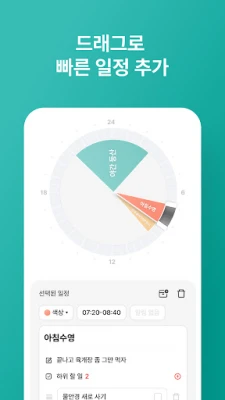 바쁜 현대인의 필수품, 효율적인 시간 관리를 위한 혁신적인 도구를 소개합니다. 프레스트가 선사하는 이 스마트한 솔루션은 복잡한 일정을 직관적으로 정리하고, 당신의 소중한 시간을 최대한 활용할 수 있도록 돕습니다. 손가락 드래그만으로 나만의 원형 시간표를 손쉽게 구성하고, 일별 할 일부터 월별 전체 계획까지, 모든 스케줄을 한눈에 파악하며 완벽하게 관리해보세요. 더 이상 놓치는 약속도, 잊히는 할 일도 없을 겁니다.