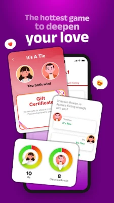 관계의 깊이를 탐색하고 싶은 커플을 위한 특별한 여정, 여기 있습니다. 서로에 대한 이해를 높이고 친밀감을 새롭게 발견할 기회를 제공하는 흥미진진한 퀴즈 게임이 준비되어 있습니다. 일상 속에서 잊고 지냈던 사랑의 불꽃을 다시 지피고, 파트너의 생각과 욕망에 대한 놀라운 사실들을 마주하며 더욱 뜨거운 유대감을 형성할 수 있도록 돕습니다. 남편, 아내, 남자친구, 여자친구 등 모든 성인 커플에게 이 앱은 소통과 사랑의 새로운 지평을 열어줄 것입니다.