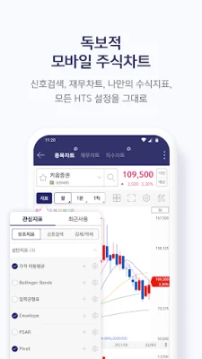 전 세계 시장의 흐름을 한눈에 파악하세요. 영웅문S1의 글로벌 전광판은 해외 주요 지수를 실시간으로 보여주며, 시장 종합 화면에서는 국내외 시장 동향, 환율, 원유 시세까지 통합 조회할 수 있습니다. HTS 수준으로 강화된 차트 기능은 신호 검색, 재무 차트, 나만의 수식 지표 설정 등 전문적인 분석 도구를 제공하여 깊이 있는 시장 통찰력을 선사합니다. 또한, 간편하게 나만의 조건 검색식을 만들고 실시간으로 종목을 발굴하는 강력한 기능으로 투자 성공률을 높일 수 있습니다.