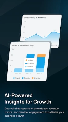 PraaktisGO는 강력한 AI 분석을 통해 재정 상태를 투명하게 보여줍니다. 일일 방문자 수, 활동적인 회원, 그리고 매출 추이를 한눈에 파악하고, 연체된 결제도 놓치지 않고 관리할 수 있습니다. AI가 제공하는 깊이 있는 통찰력은 더 현명하고 데이터 기반의 비즈니스 결정을 내릴 수 있도록 돕습니다. 자동화된 청구 시스템과 정기 결제 관리는 복잡한 행정 업무를 간소화하여 귀중한 시간을 절약해 드립니다.