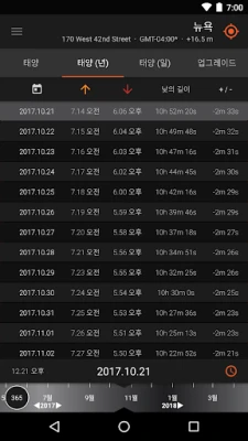 하루 또는 일 년 내내 변화하는 태양의 정교한 궤적을 3D 나침반 뷰를 통해 생생하게 시각화하며, 태양의 방위와 고도 변화를 실시간으로 경험해보세요. 햇빛에 따른 그림자의 길이와 방향, 투영되는 방식을 예측하여 공간 활용이나 디자인 계획에도 영감을 받을 수 있습니다. 혁신적인 시간 슬라이더 기능으로 낮의 길이 변화와 하늘을 가로지르는 태양의 경로를 직관적으로 탐색하며, 미래의 특정 시점의 태양 위치까지 미리 관찰할 수 있습니다. 자기 편차 보정 기능은 언제나 정확한 정보를 제공합니다.